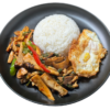 Isaan style Thai grilled marinated pork neck with natural coconut sugar with local Thai herbs and secret house tamarind chilli dip